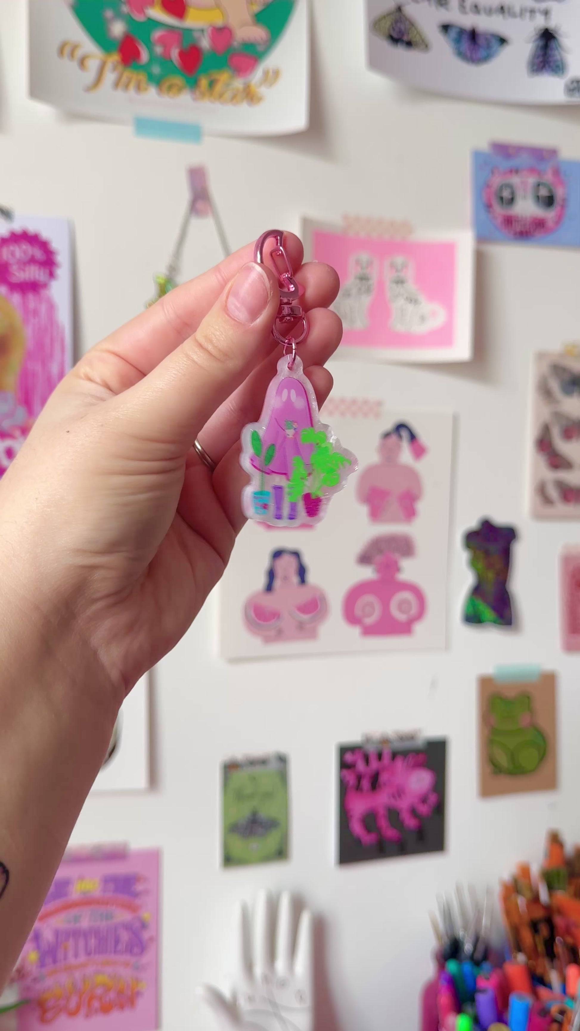65mm (2.5”) acrylic keyring printed with my own design on pearlescent acrylic with a metal clasp